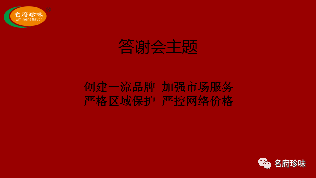 本次答谢会的主题:创建一流品牌 加强市场保护